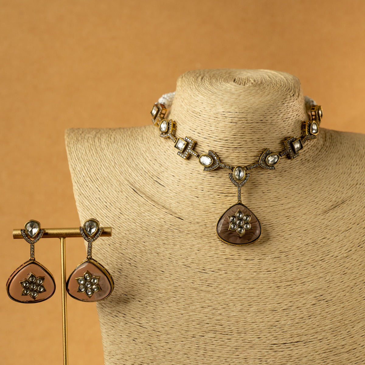 MITTARA SEMI HANDMADE MONALISA STONES NECKPIECE/NECKLACE EARRINGS NL317