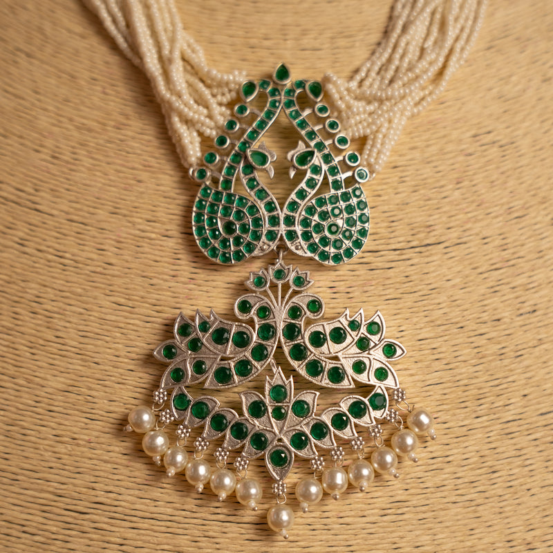 IVY PREMIUM STONES HANDMADE FAUX SILVER HASLI/NECKPIECE/NECKLACE WITH EARRING NL289