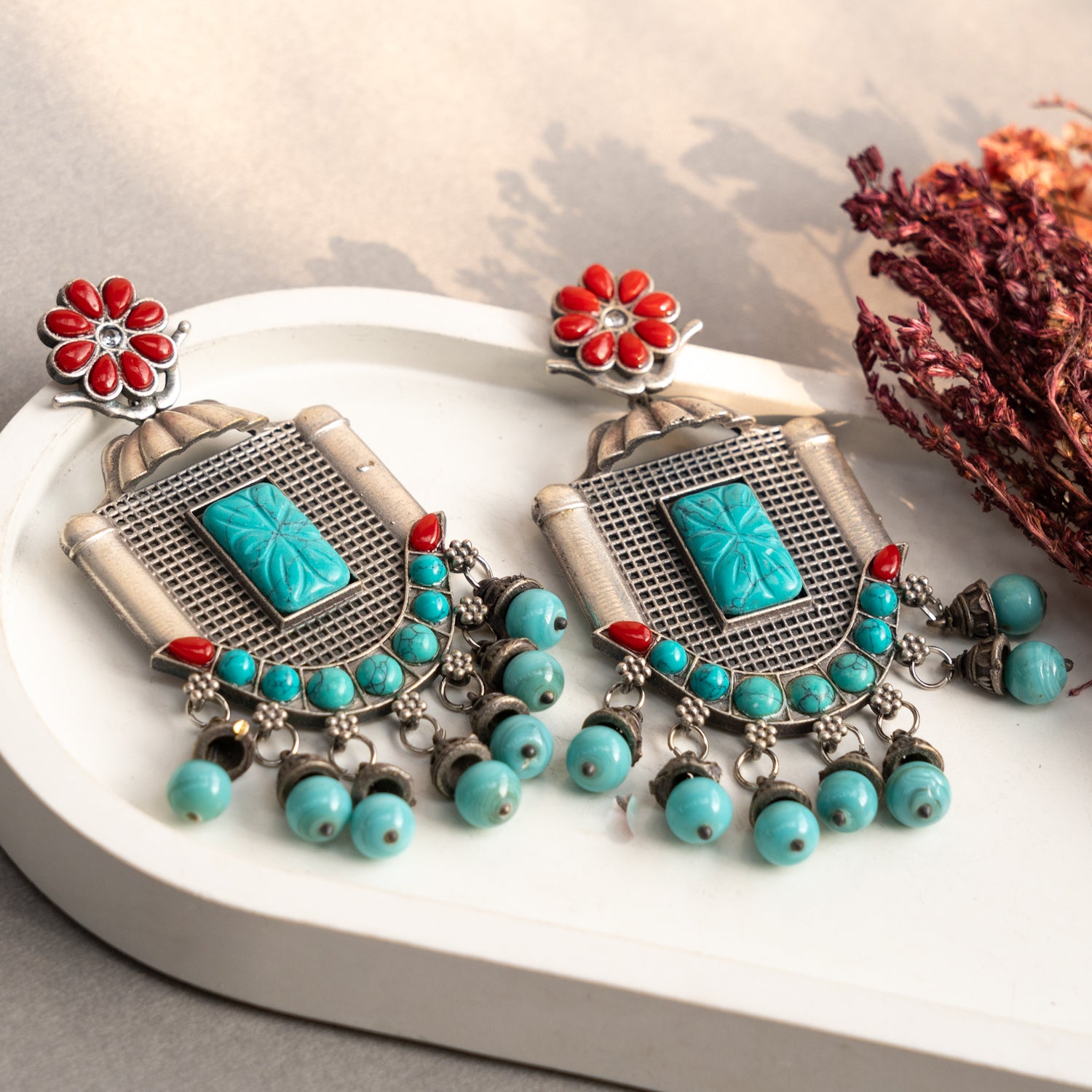 NADIYA FAUX SILVER RAW AND RUSTIC SEMI HANDMADE EARRINGS ER680