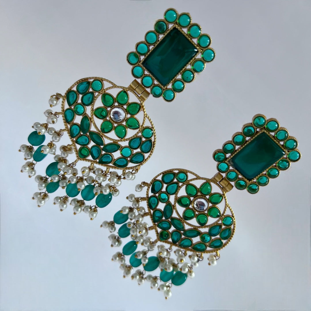 AMARA SEMIHANDMADE BEADED MONALISA GOLD-TONED DANGLER EARRING ER103