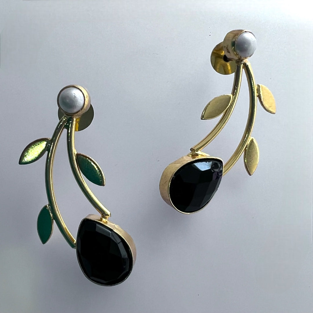 LEAFY PETAL SEMI HANDMADE MONOLISA GOLD WITH PEARL GOLD-TONED EARRINGS ER218