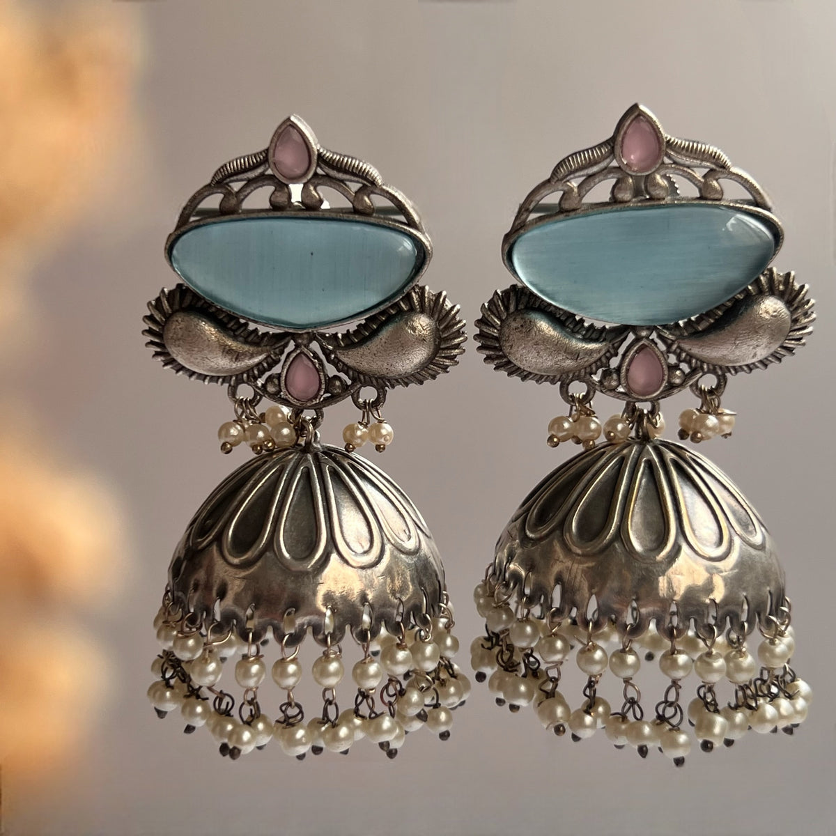 DURBAR SILVER LOOK ALIKE SEMI-HANDMADE JHUMKAS ER187