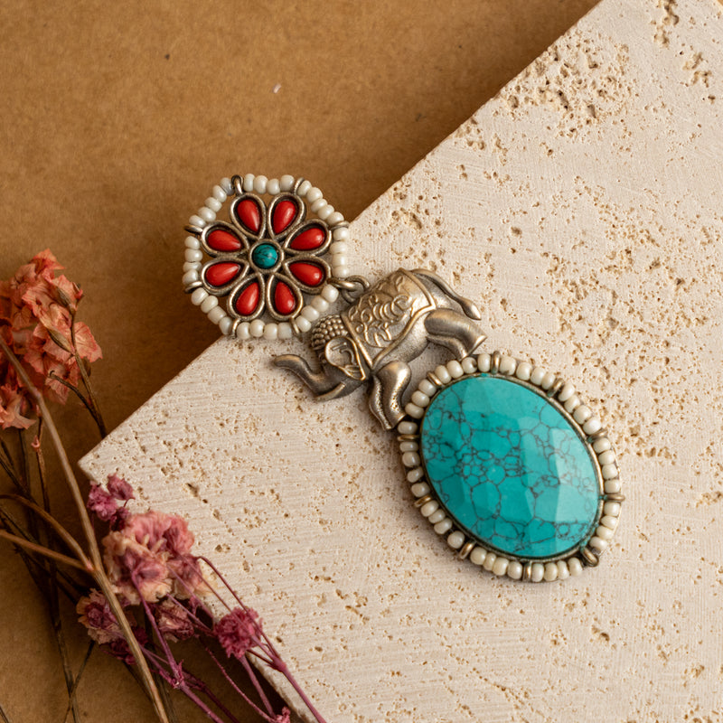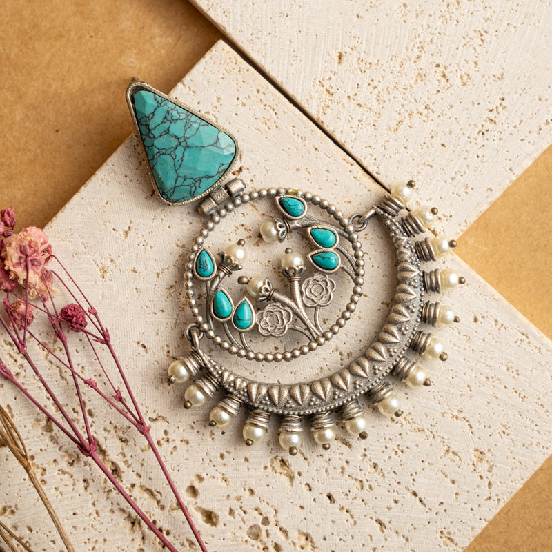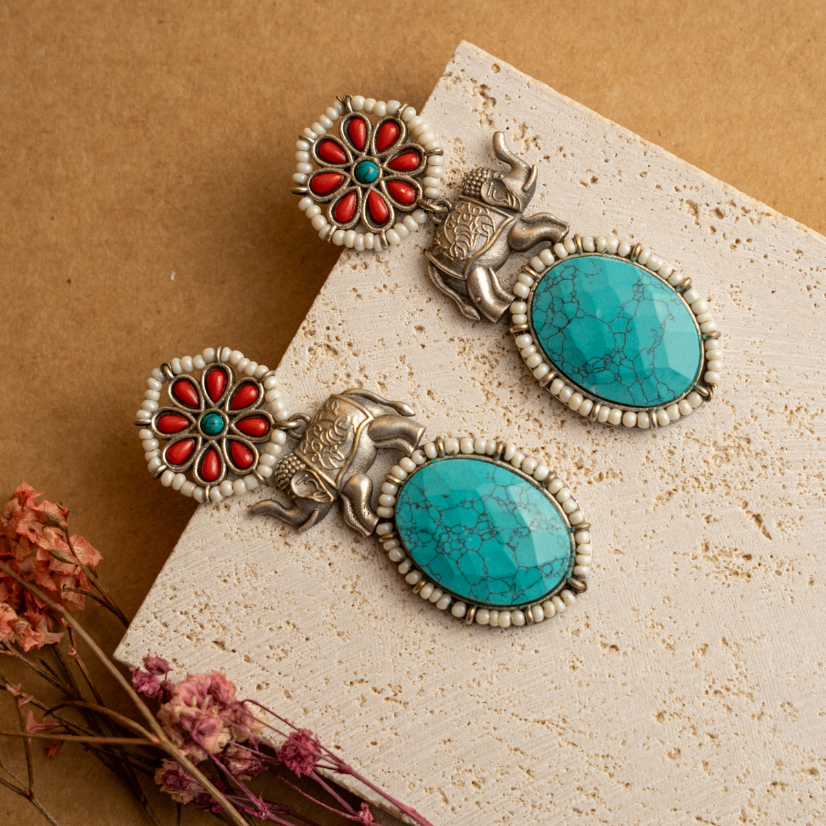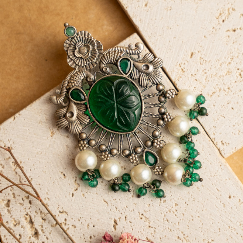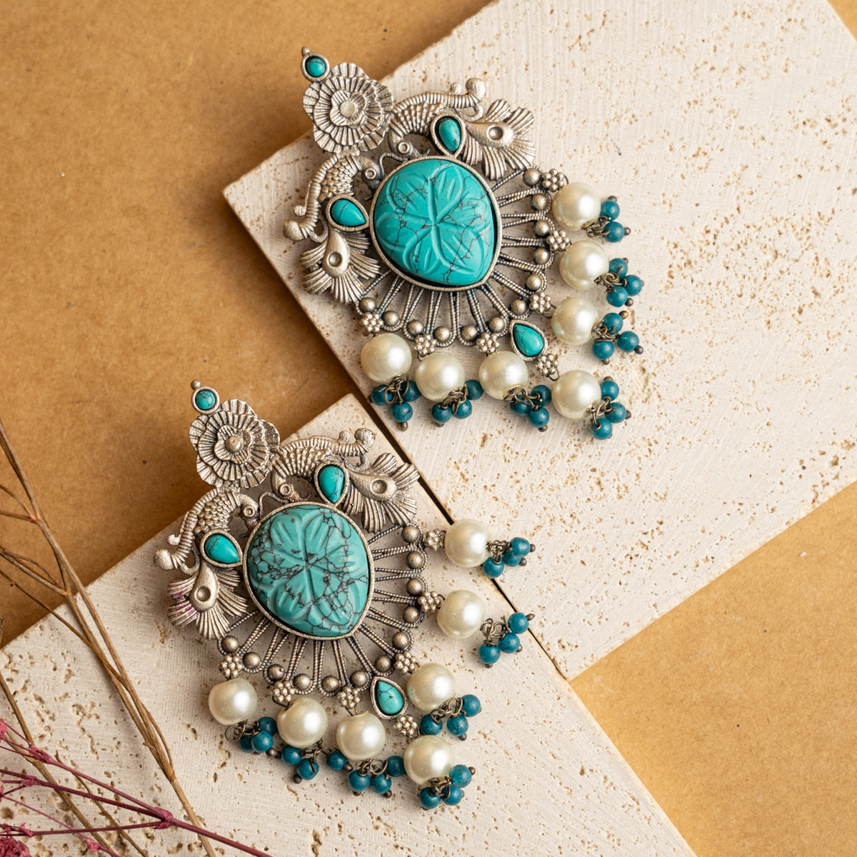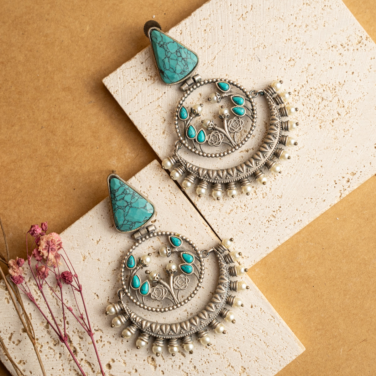 KASHVI BIJOUX PREMIUM FAUX SILVER RAW AND RUSTIC HANDMADE MONALISA STONE EARRINGS/JHUMKAS ER738