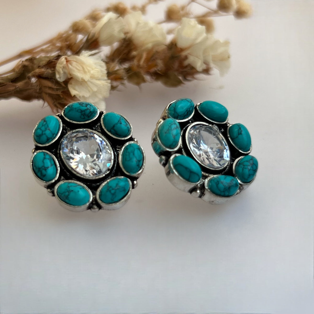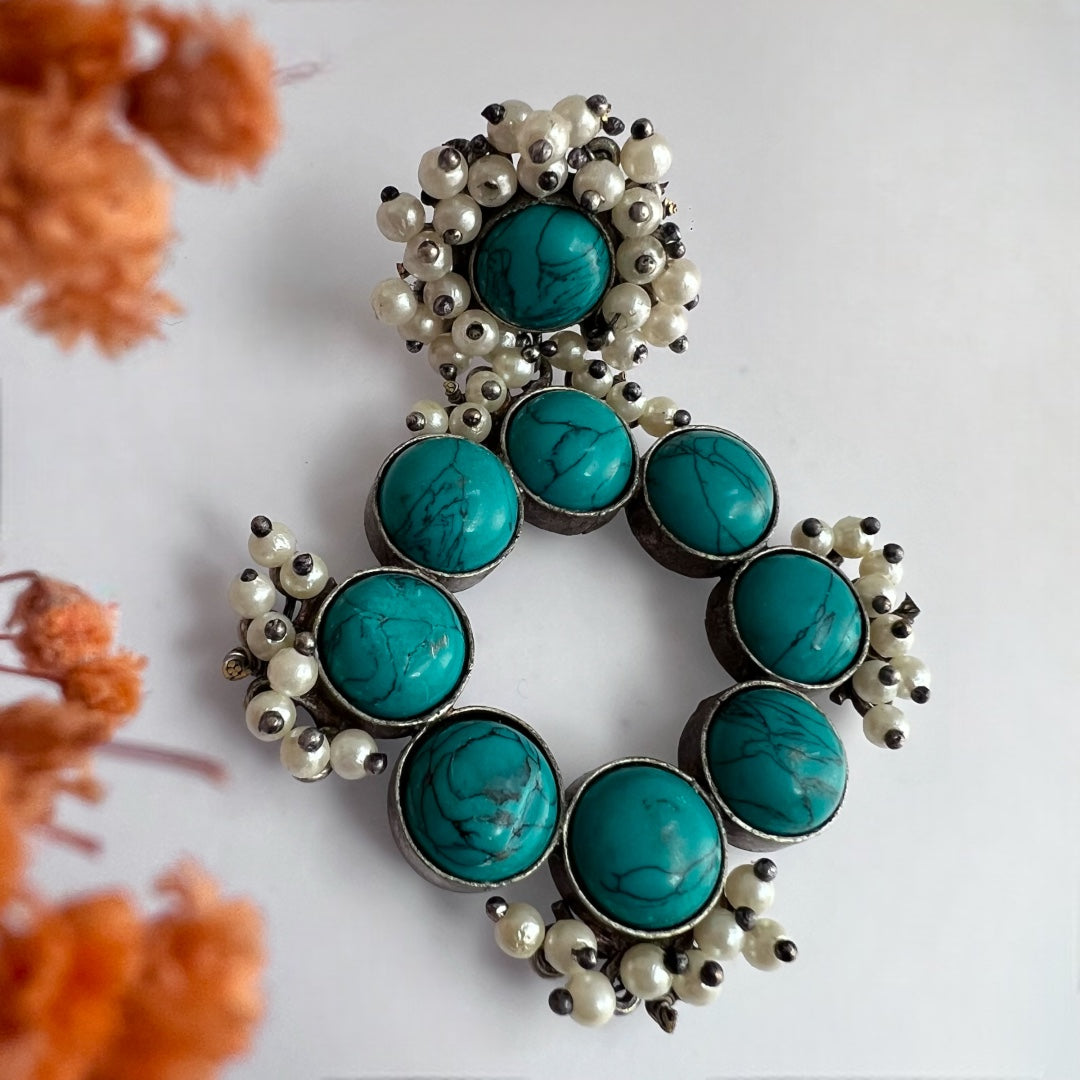 FLORAL FIROZA LAB TURQUOISE WITH PEARL HANDMADE STUD ER161