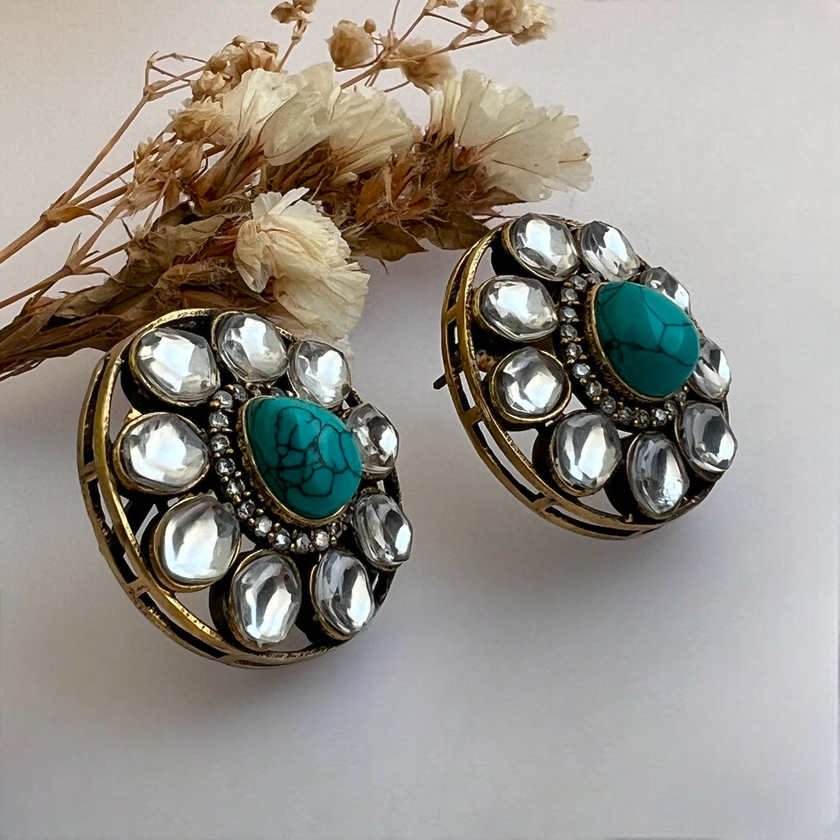 YASODHA GOLD-TONED KUNDAN MONALISA PREMIUM STUDS WITH AD STONES ER566