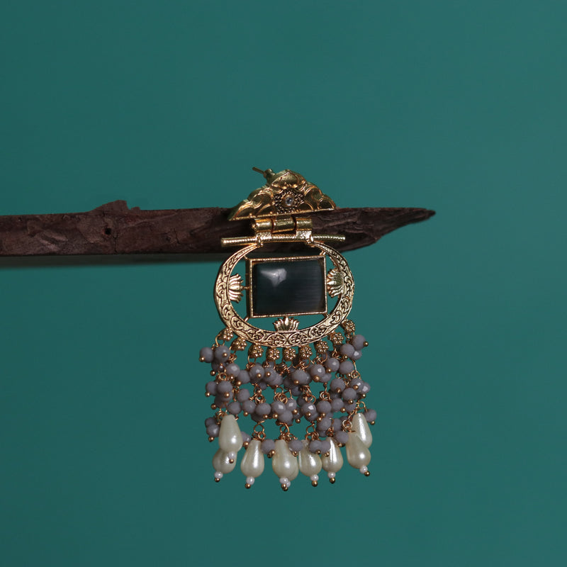 AMARA SEMIHANDMADE BEADED MONALISA GOLD-TONED DANGLER EARRING ER103