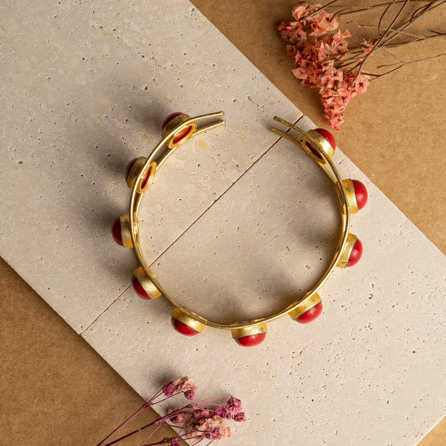 MIRUTHULA HAND HAMMERED AND HANDMADE CORAL GOLD TONED CLASSIC BRACELETS BR39