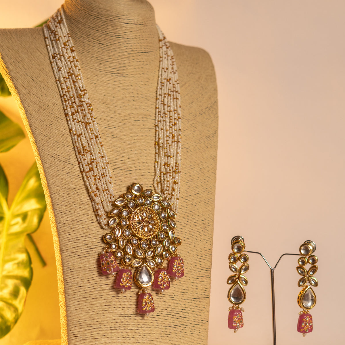 KIRANYA KUNDAN AND NATURAL STONE HAND PAINTED AND HANDMADE MALA ML13