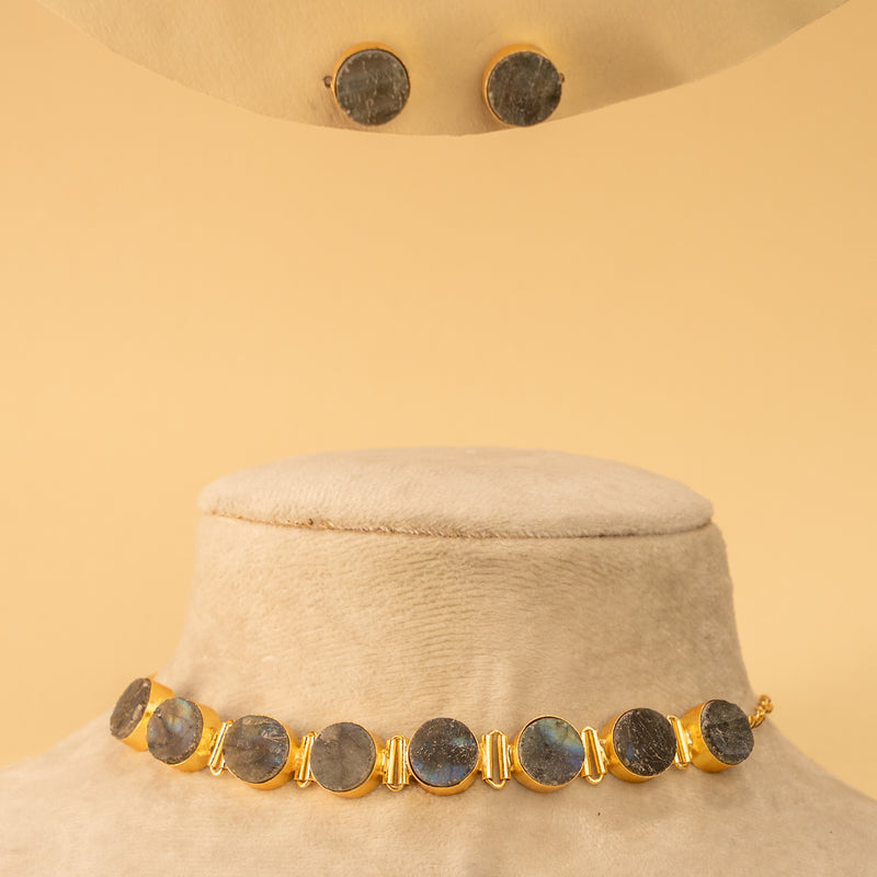 WILLOW BIJOUX PREMIUM HANDMADE RAW STONE CHOKER WITH EARRINGS CH122