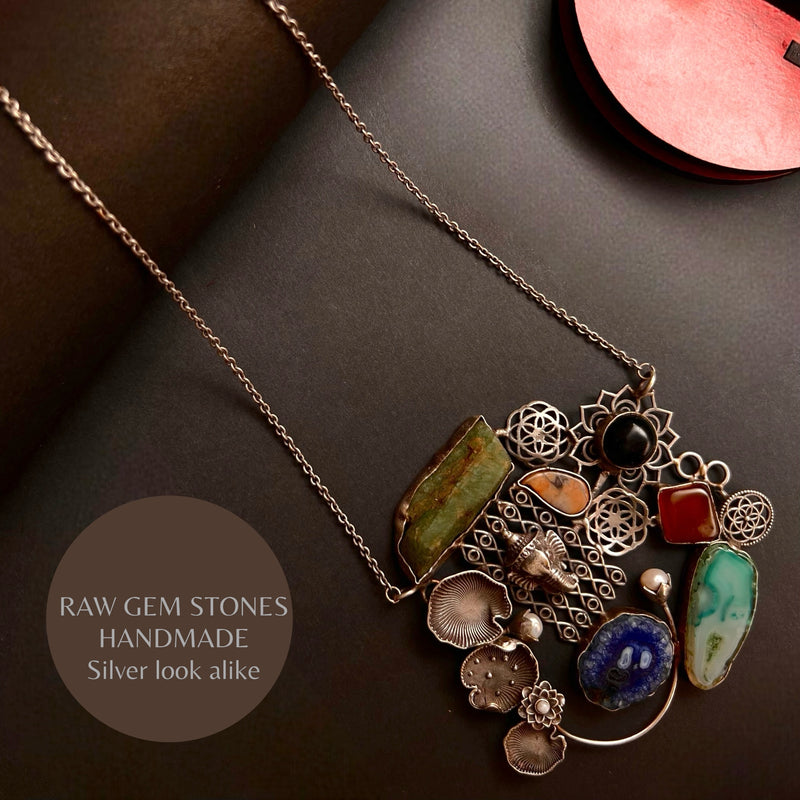 PARINA HANDMADE MULTI STONE STATEMENT RAW AND RUSTIC FINISH NECKLACE NL03