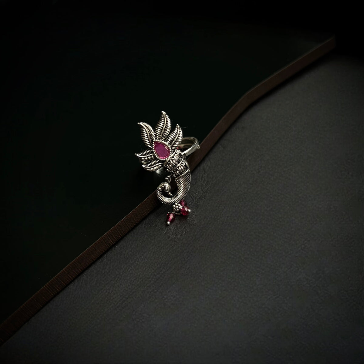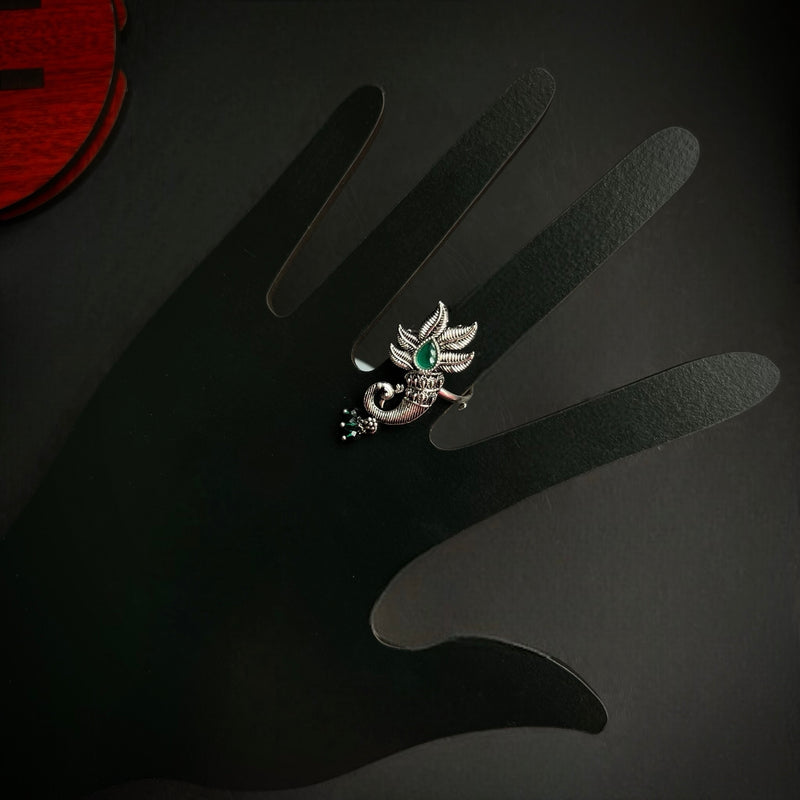 PEACOCK FLORAL OXIDIZED FINGER RING R73