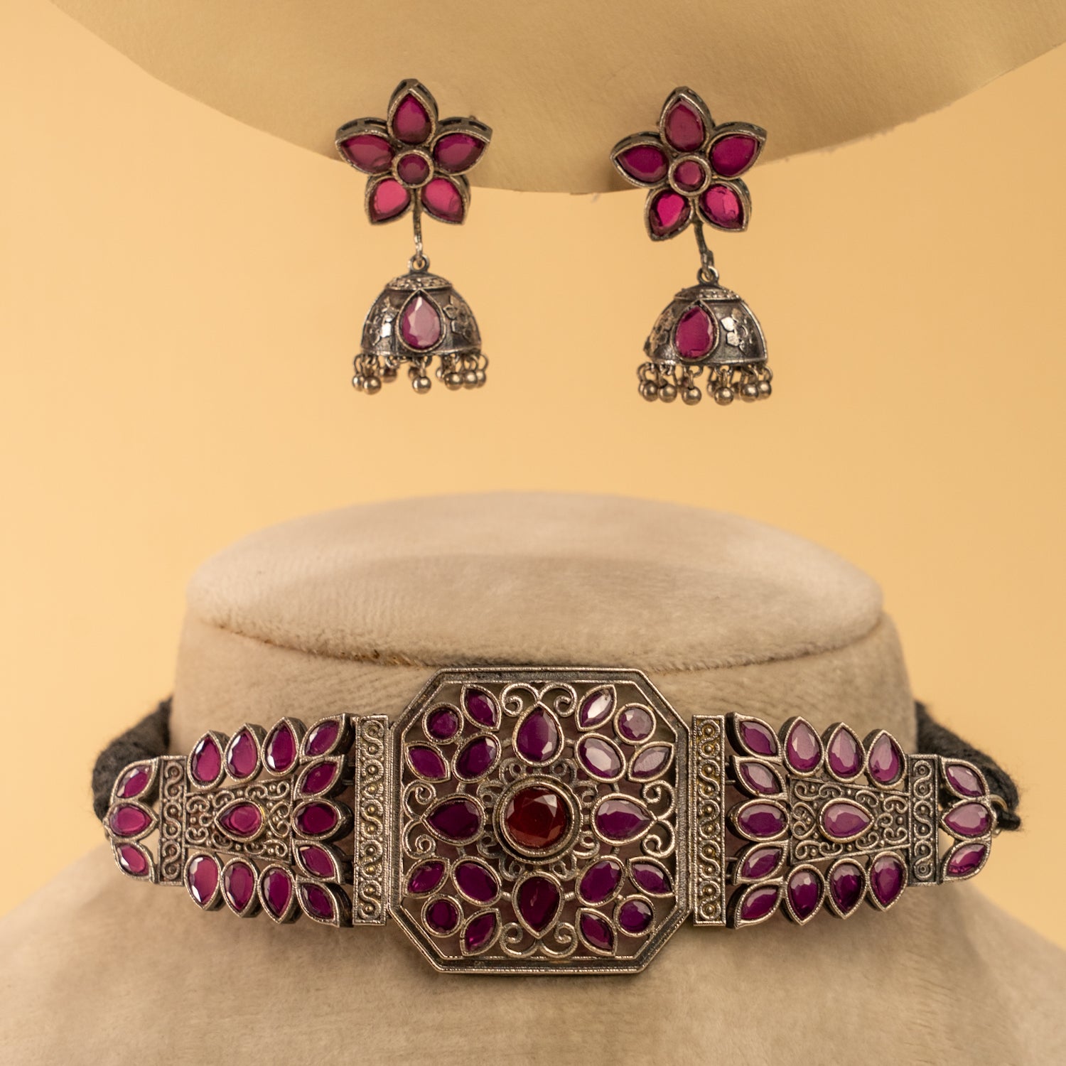 ELLA RAW AND RUSTIC ANTIQUE SEMI HANDMADE CHOKER WITH EARRINGS CH115