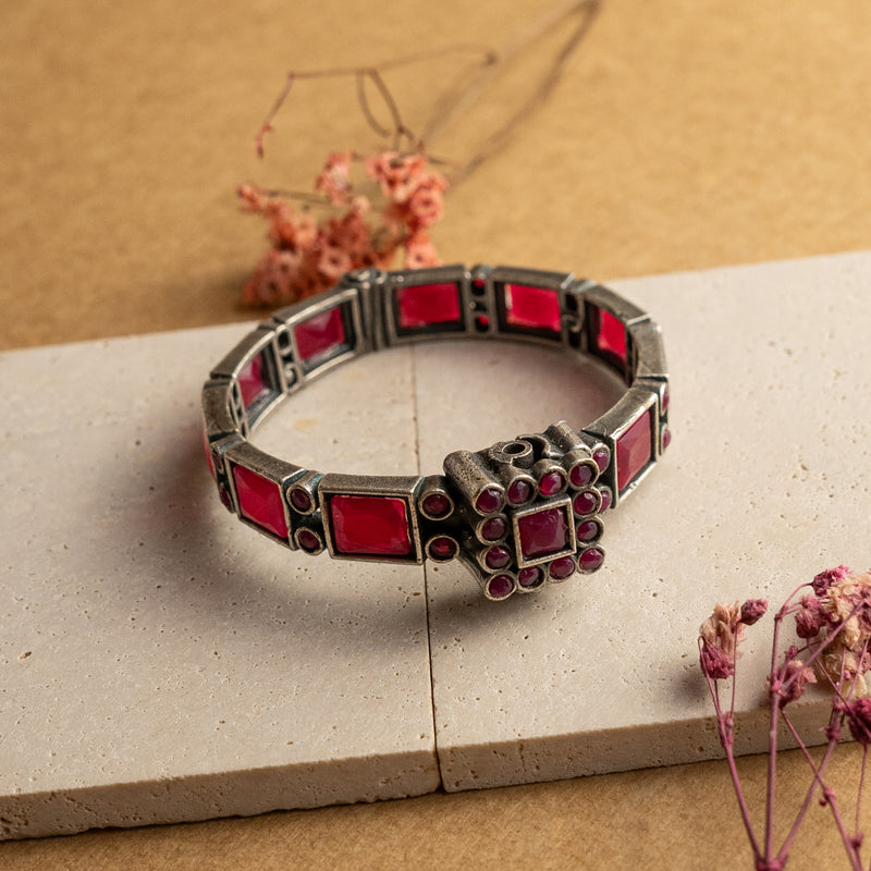ANIKA RUBY SEMI HANDMADE SILVER TONED FAUX SILVER CLASSIC BRACELET/BANGLES/KADA BR64