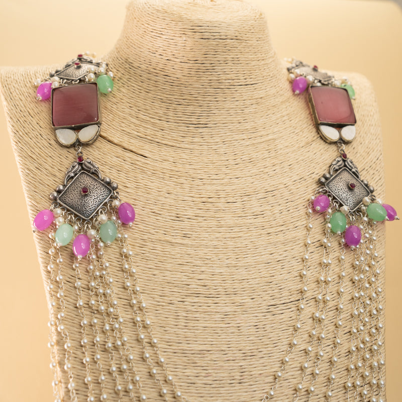 ZOYAHH PEARL LAYERED BIJOUX EXCLUSIVE HANDMADE SILVER LOOK ALIKE MALA/ NECKPIECE ML44