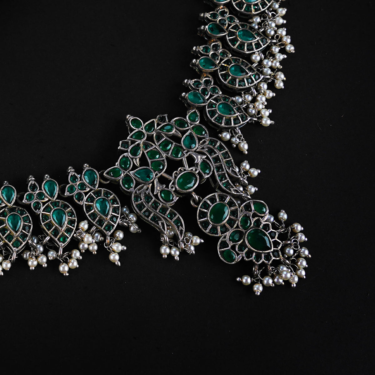 ATHENA BIJOUX PREMIUM SEMI HANDMADE ANTIQUE FAUX SILVER NECKPIECE/NECKLACE EARRINGS NL217