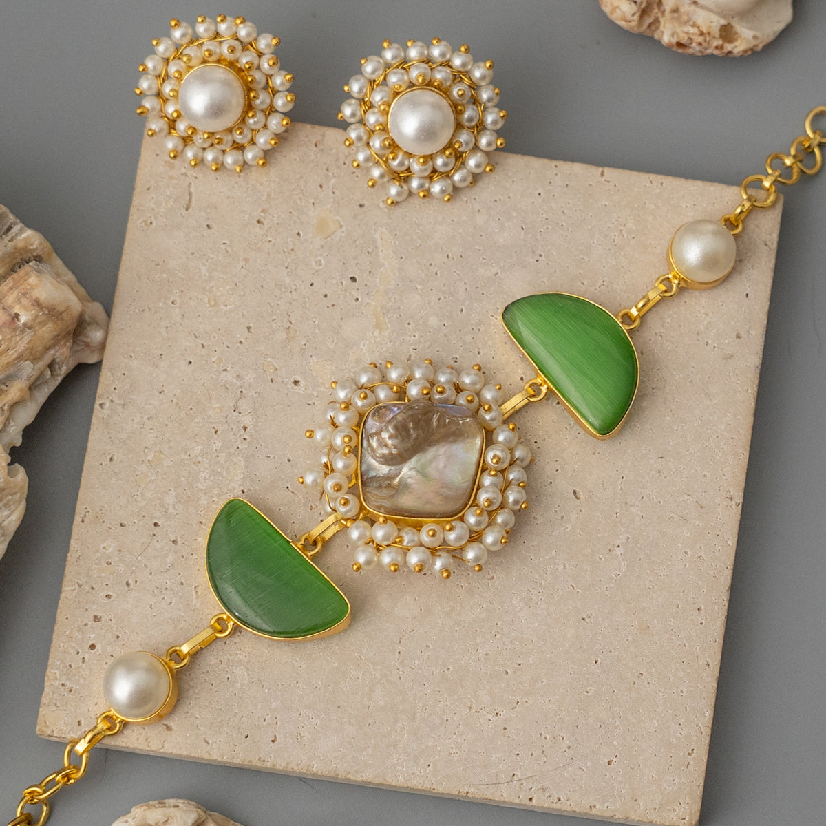 JIANNA SEMI HANDMADE ANTIQUE NECKPIECE/NECKLACE/HASLI WITH EARRING NL284