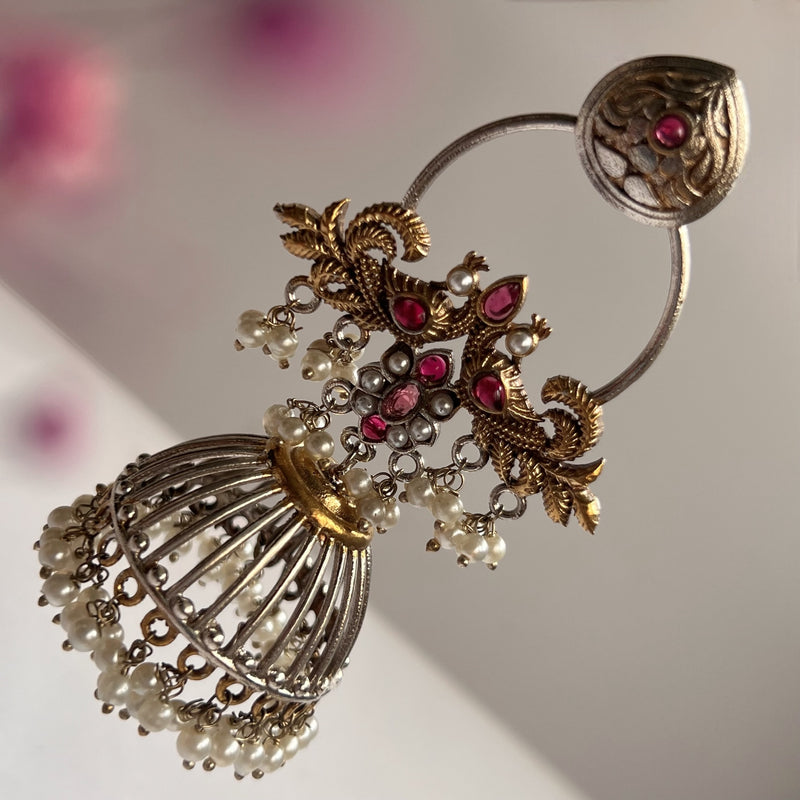 RITHUNA FAUX SILVER DUAL TONE HANDMADE ANTIQUE EARRINGS ER653