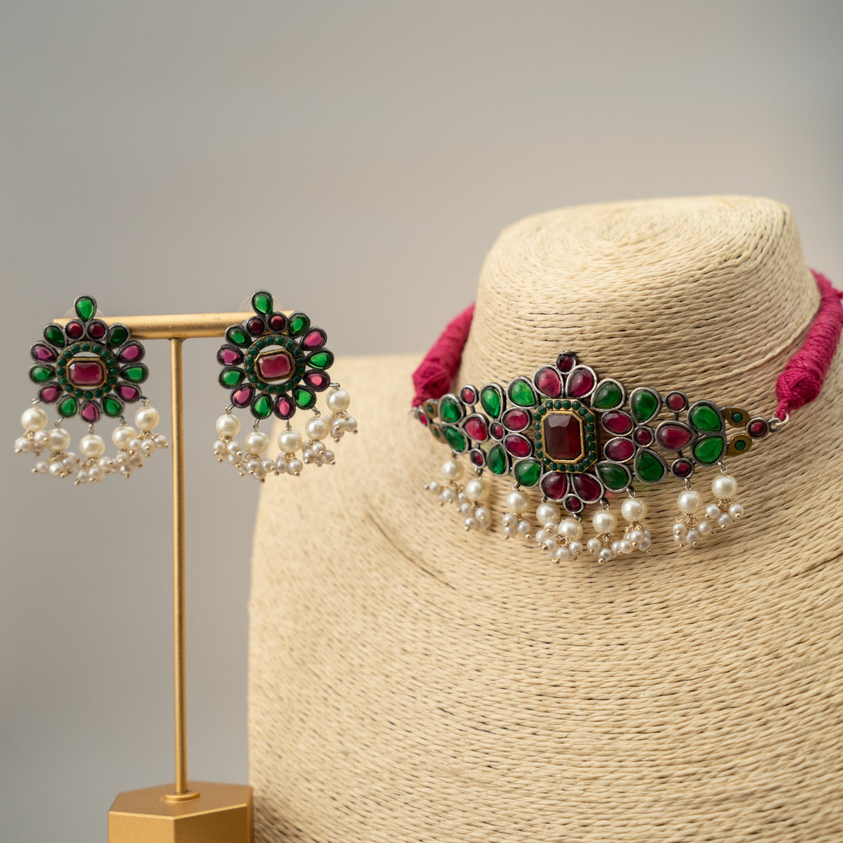 VIDHU HANDMADE HAMMERED UNSHAPED HAND PAINTED CHOKER WITH EARRINGS CH202