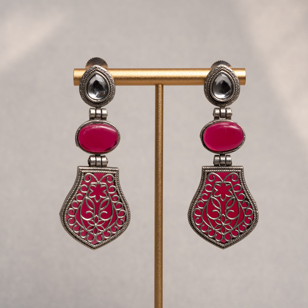 STOEM FAUX SILVER ANTIQUE SEMI HANDMADE EARRINGS ER788