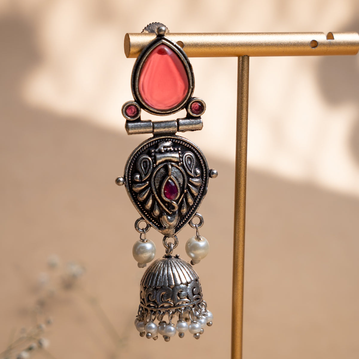 AISHA SILVER LOOK ALIKE SEMI HANDMADE JHUMKAS EARRINGS ER872