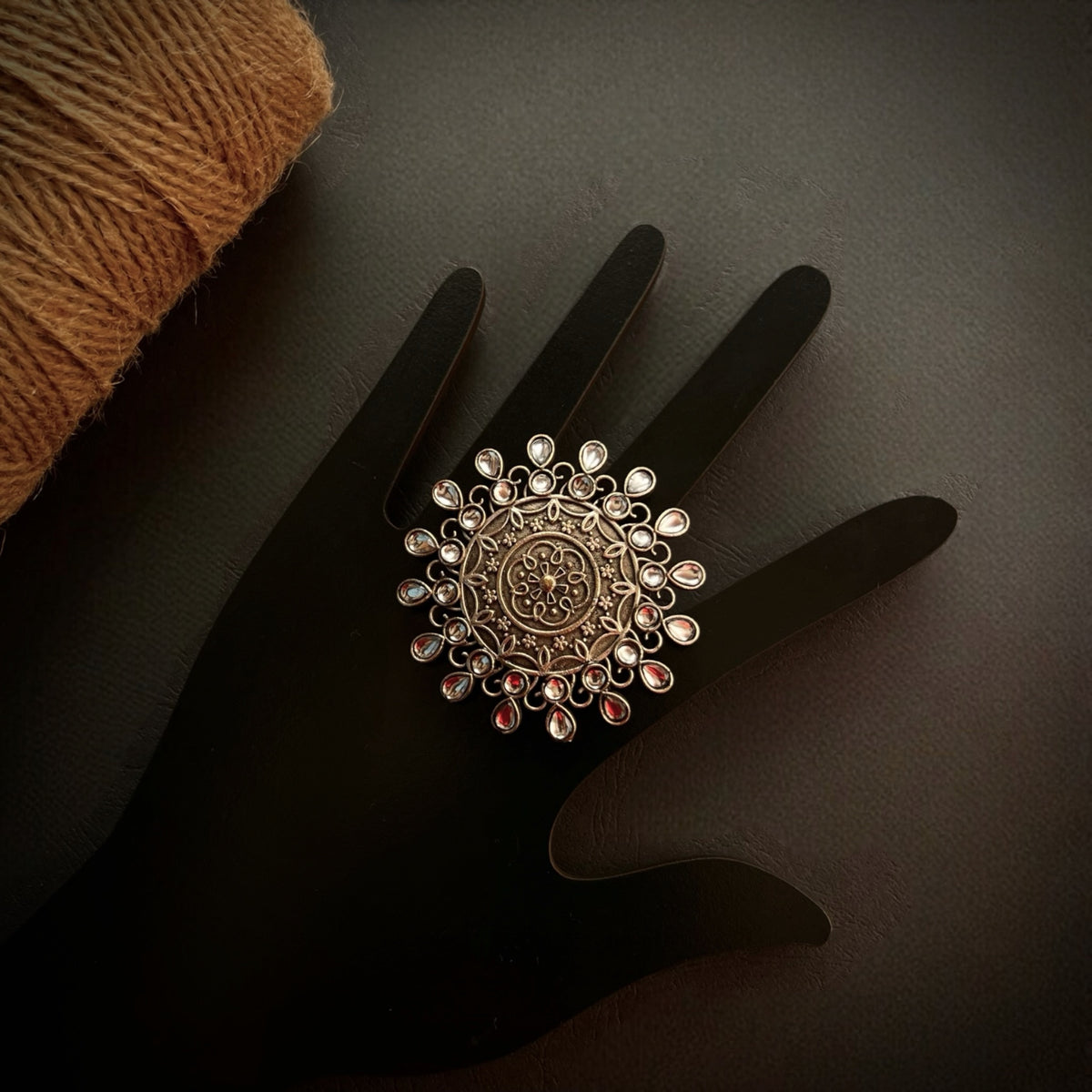 FLORAL FANTASY SILVER LOOK ALIKE FINGER RING R18
