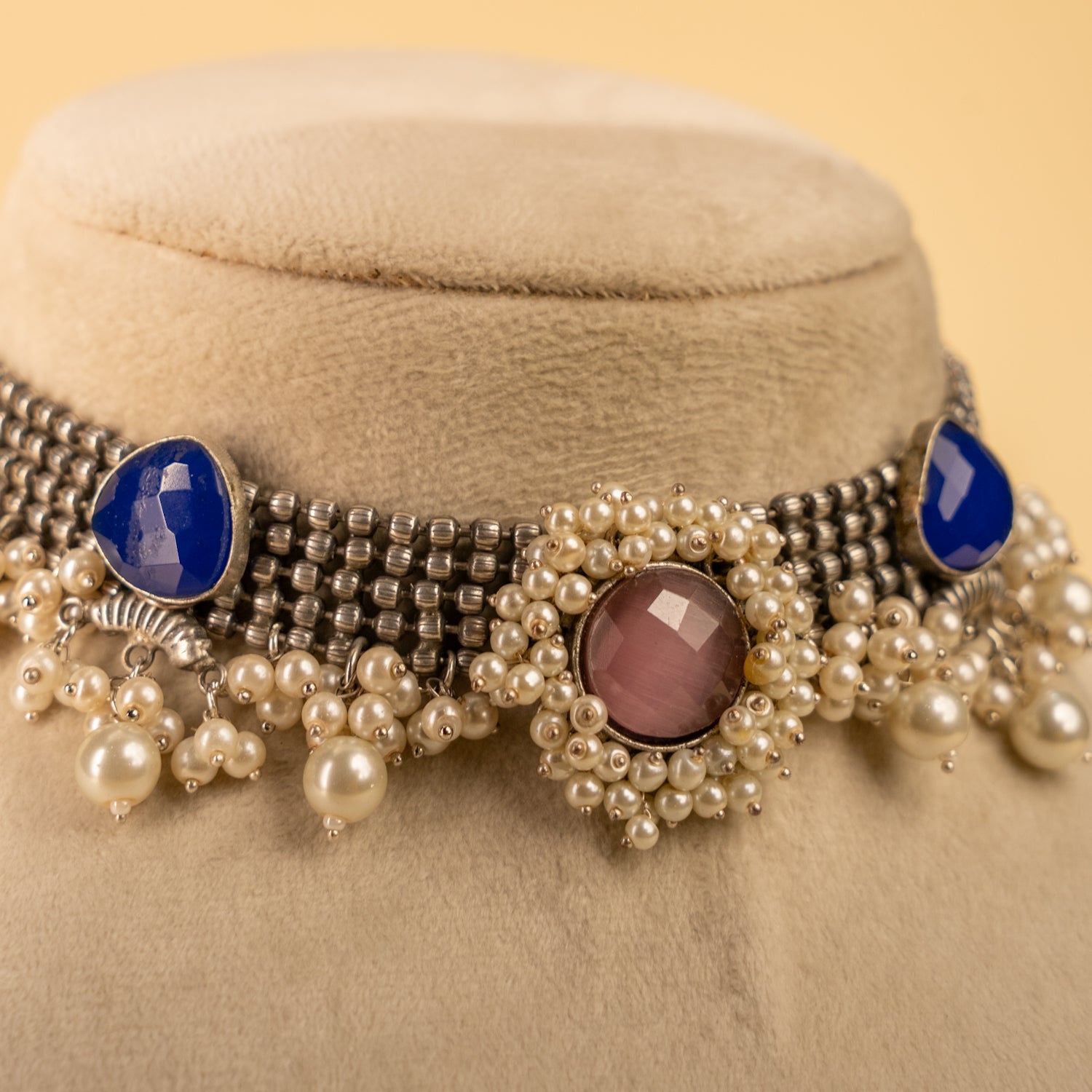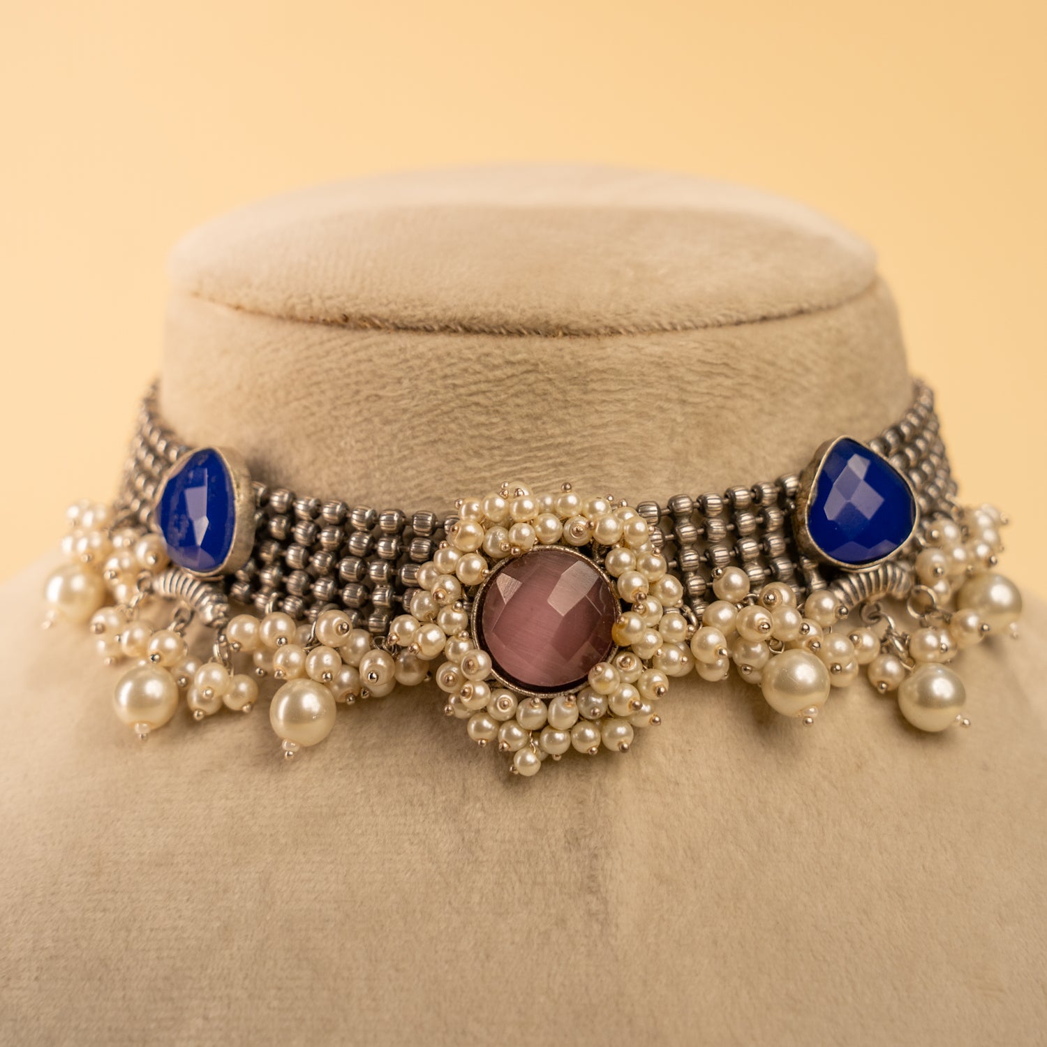 KASHVI BIJOUX PREMIUM AND EXCLUSIVE SEMI HANDMADE CHOKER WITH EARRINGS CH147