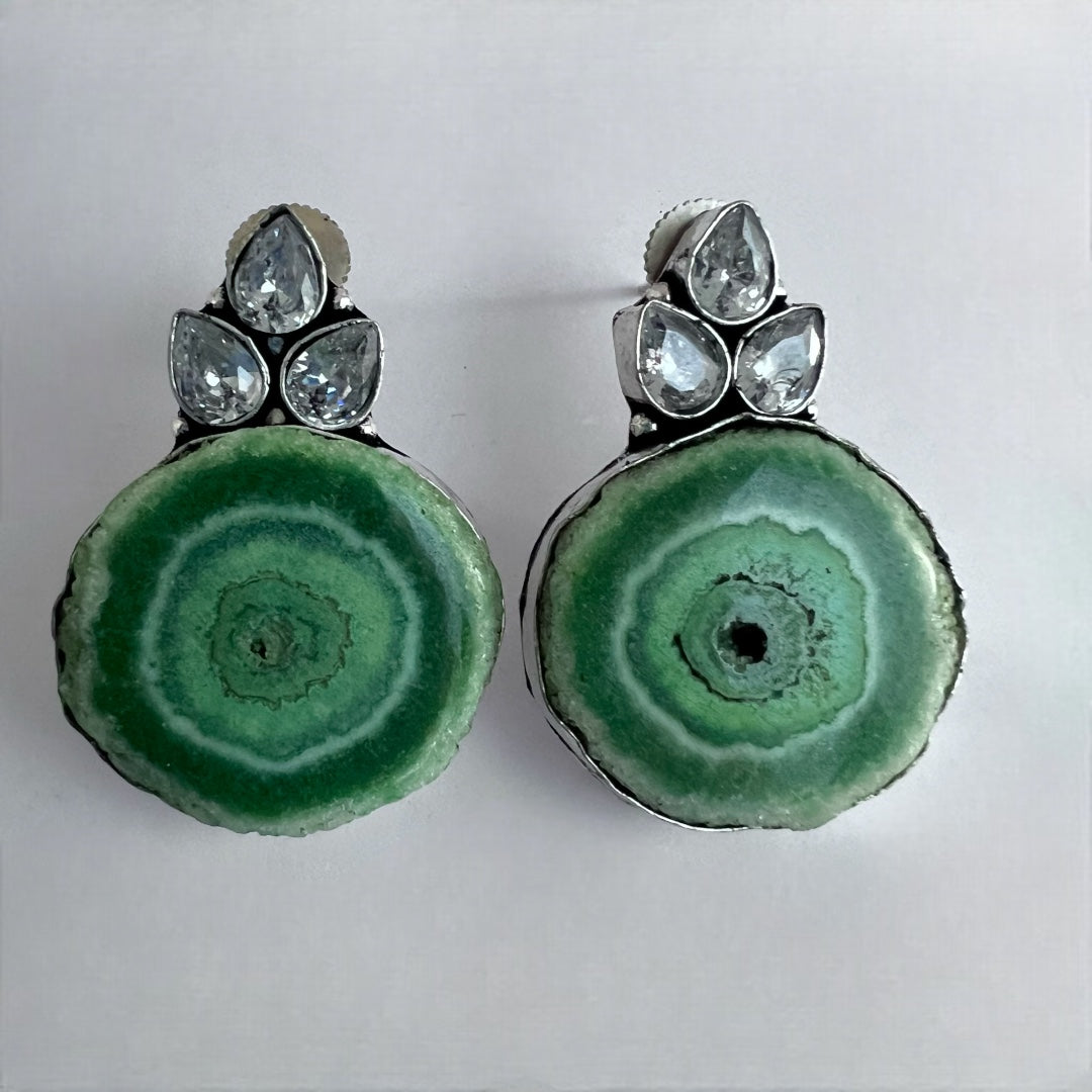 NATURES CIRCLE NATURAL STONE SILVER LOOK ALIKE HANDMADE EARRINGS ER156