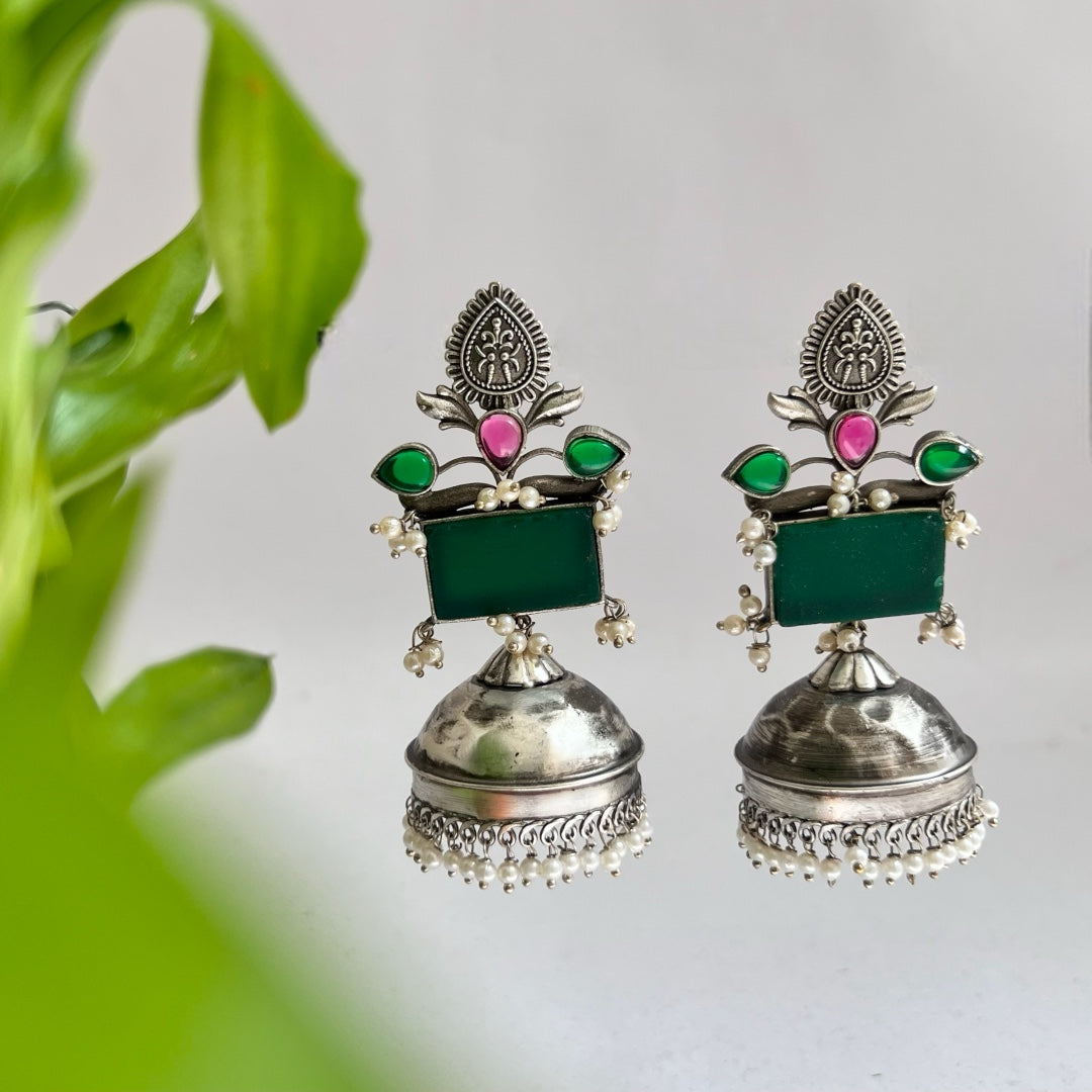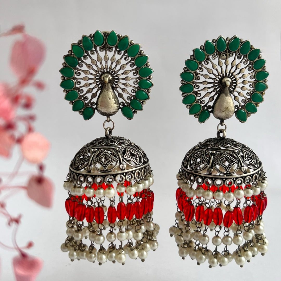 MAYIL SILVER LOOK ALIKE SEMI HANDMADE JHUMKA ER186