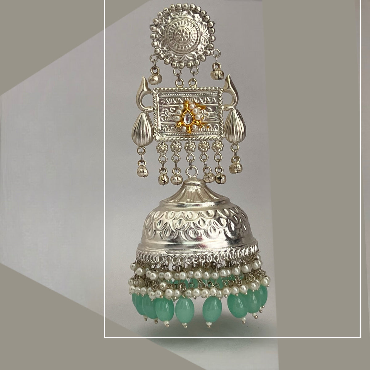 PARITHA SILVER LOOK ALIKE PREMIUM POLISH HANDMADE DUAL TONE JUMBO JHUMKA ER361