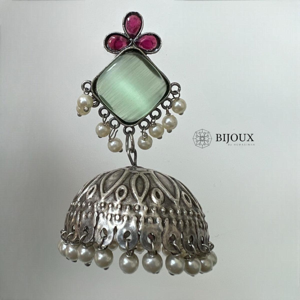 CUBY PIE SILVER LOOK ALIKE HANDMADE JHUMKA ER245