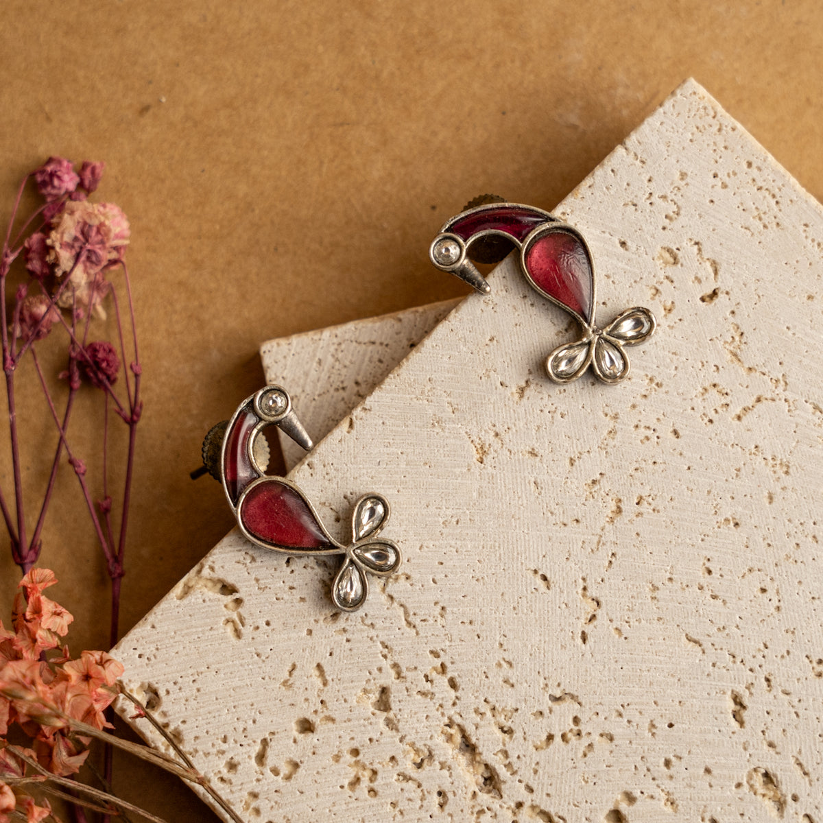 JIYA FAUX SILVER RAW AND RUSTIC SEMI HANDMADE EARRINGS/STUDS ER709