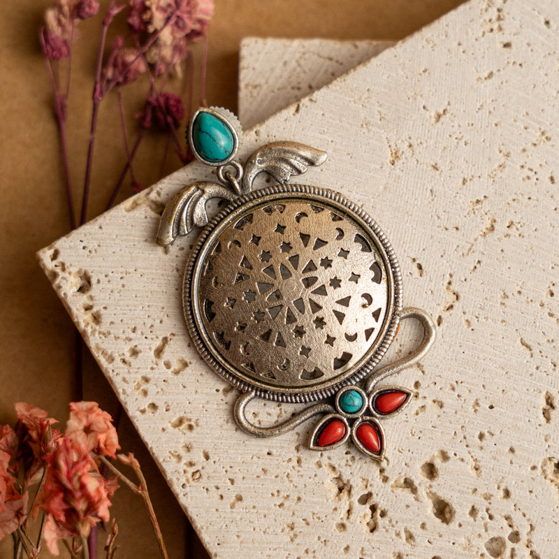 FALGUNI FAUX SILVER ANTIQUE CARVING STONE SEMI HANDMADE EARRINGS ER770