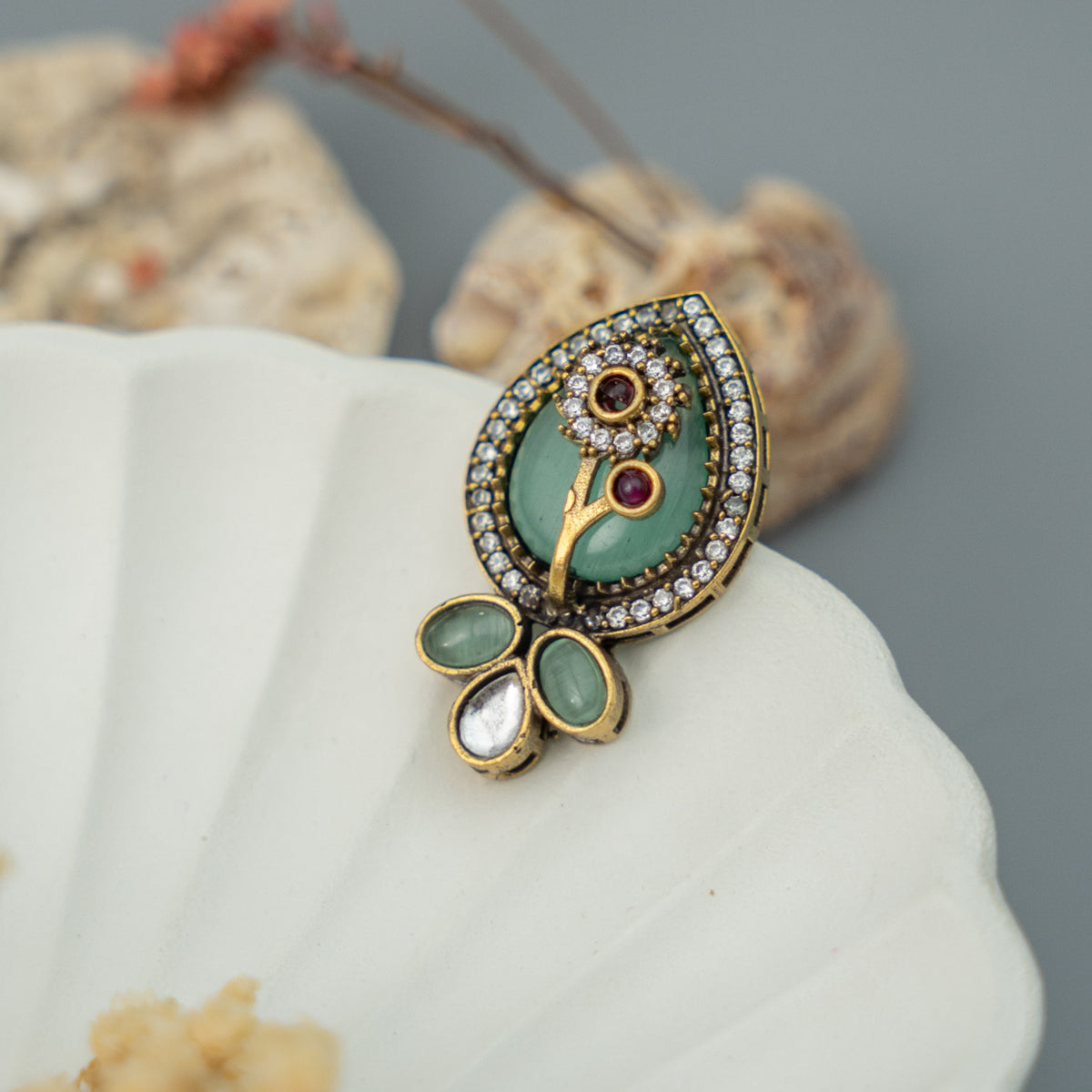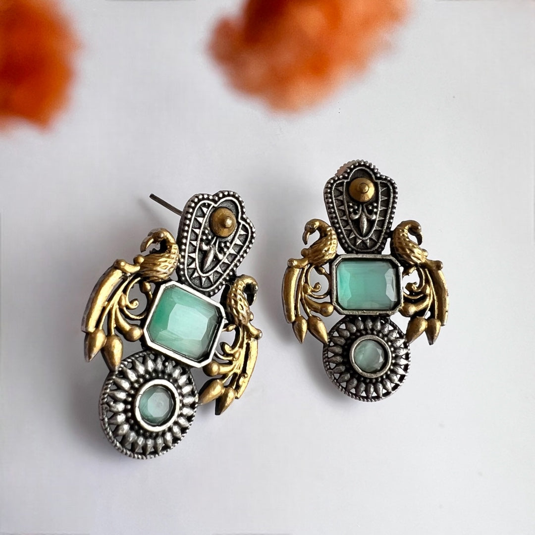 GEMSTONE PEACOCK ELEGANCE DUAL TONE SILVER LOOK ALIKE EARRING ER232