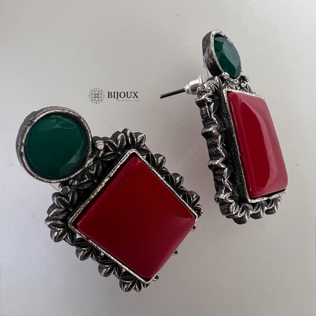 AELIN FAUX SILVER ANTIQUE SEMI HANDMADE EARRINGS/STUDS ER797