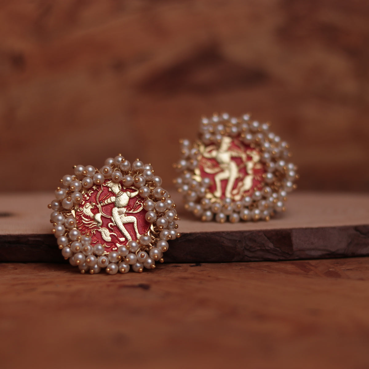 CHIC MEENAKARI AFRO STUDS WITH PEARL WORK ER46