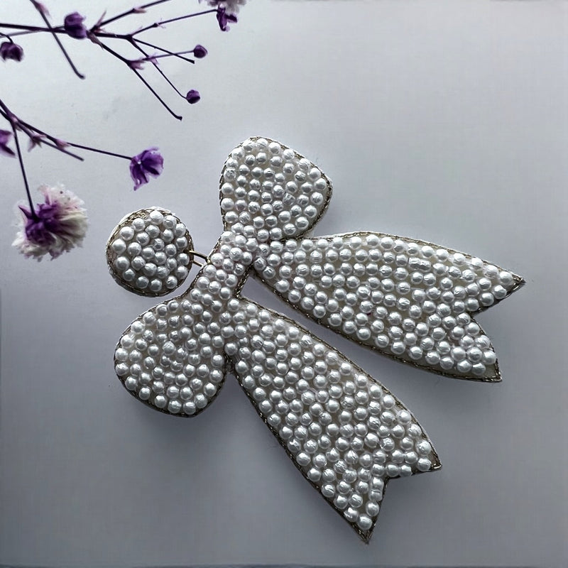 BOW POP FABRIC AND BEADS HANDMADE EARRING ER498