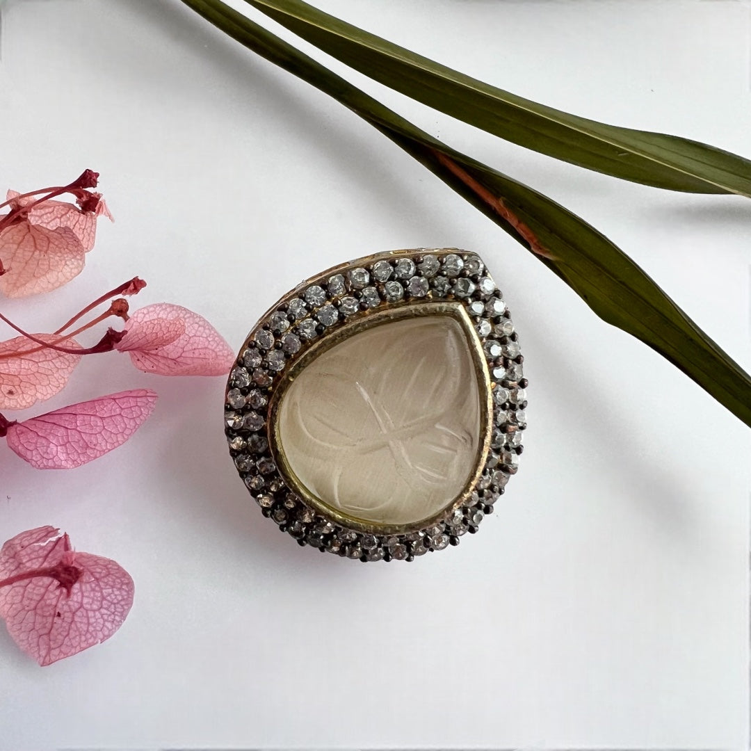 DROPLET CARVING STONE WITH AD STONE STUDS ER164