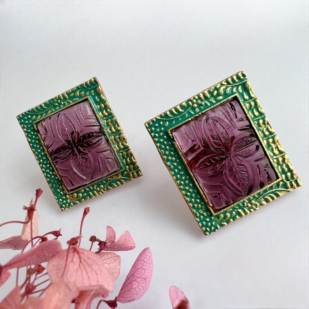 BOTANIC BLOSSOM HANDMADE MONALISA GOLD TONED STUDS ER206