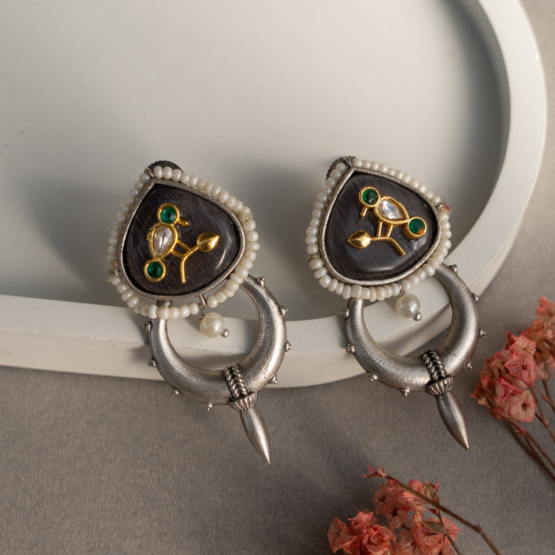 ETTA FAUX SILVER PREMIUM AND EXCLUSIVE ANTIQUE SEMI HANDMADE EARRINGS ER787