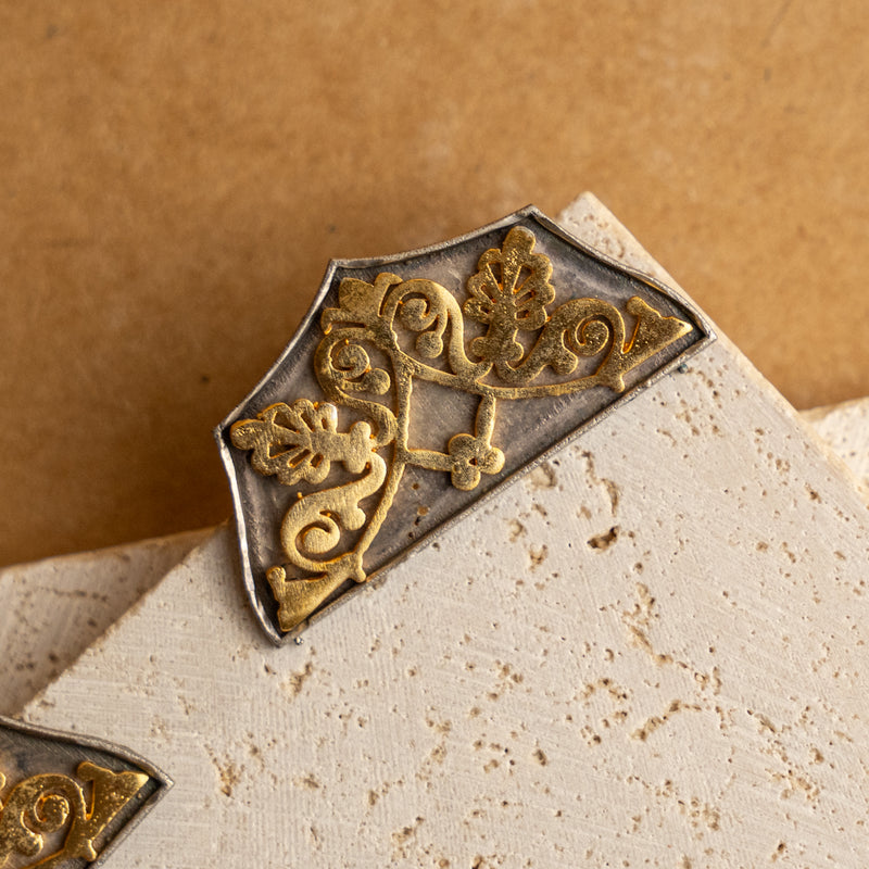 AILANY DUAL TONE FAUX SILVER RAW AND RUSTIC HANDMADE EARRINGS/STUDS ER705