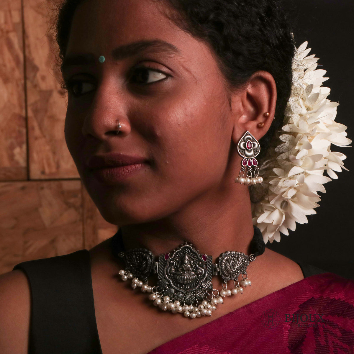 NANDHINI BIJOUX PREMIUM SEMI HANDMADE CHOKER WITH EARRINGS CH66