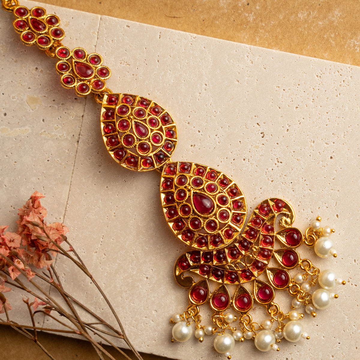 RITHIKA RUBY GOLD TONED ANTIQUE FINISH TEMPLE NECKLACE WITH EARRINGS NL174