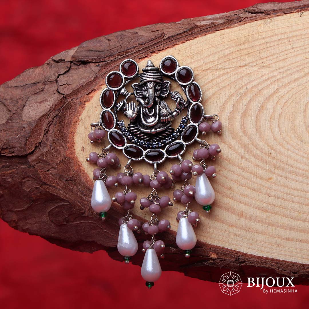 GANPATHI PAPPA OXIDIZED MONALISA STONE TEMPLE EARRING ER139