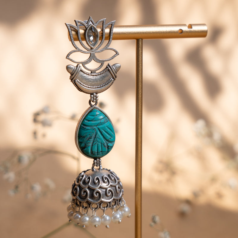NOVA FAUX SILVER CARVING STONE ANTIQUE EARRINGS/JHUMKAS ER897
