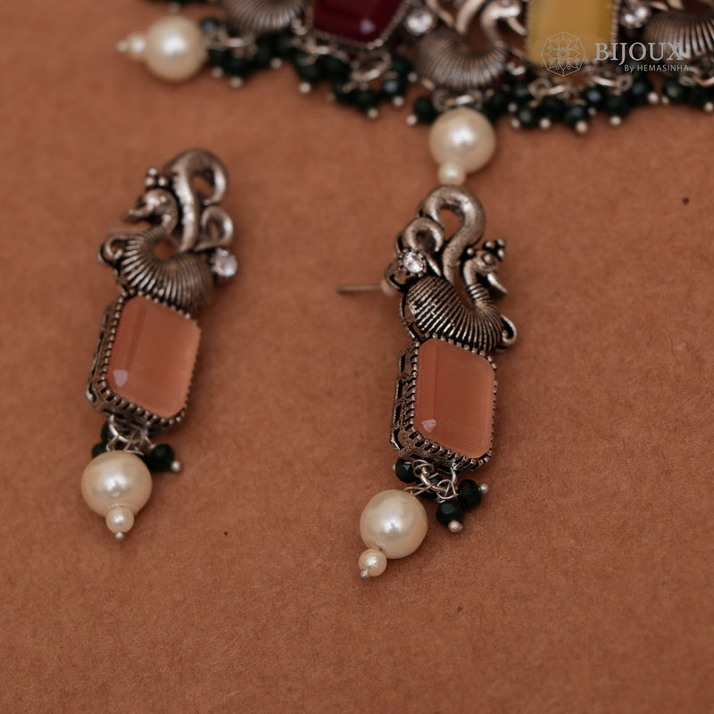MITHILDA DUAL TONED SEMI HANDMADE MONALISA STONES NECKPIECE/NECKLACE EARRINGS NL323